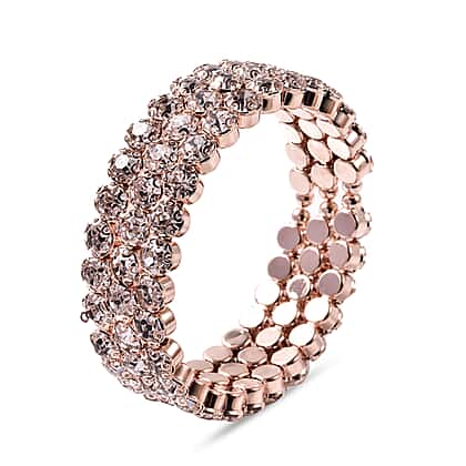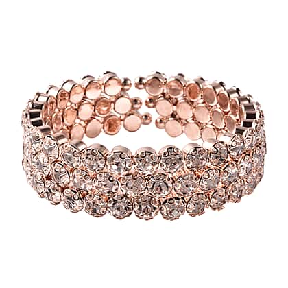 Austrian White Crystal Bangle (Size 6.5) in Rose Gold Tone