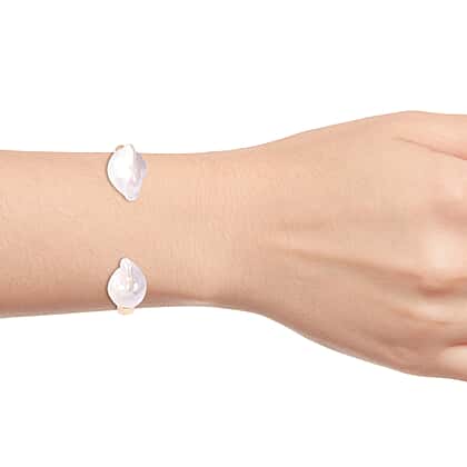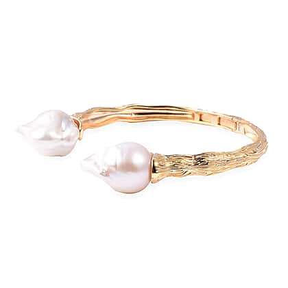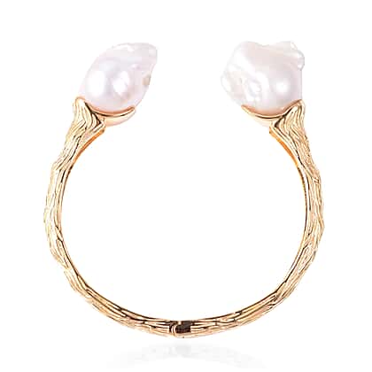 Baroque Pearl Bangle (Size 7.5) in Yellow Gold Overlay Sterling Silver, Silver wt. 22.97 Gms