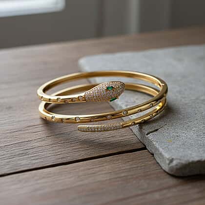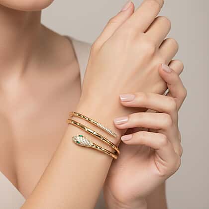 BIGGEST DESIGNER CLOSEOUT - Biacco Collection - Green Cubic Zirconia & White Cubic Zirconia Serpent Bangle