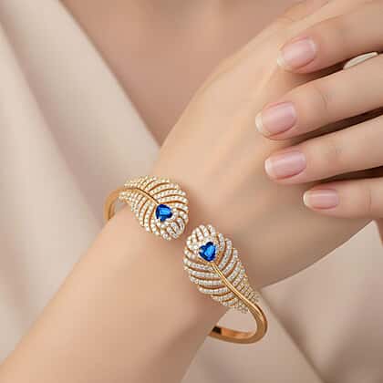 Blue Cubic Zirconia, White Cubic Zirconia Cuff Bangle Pure Yellow Brass 1.900 Ct.