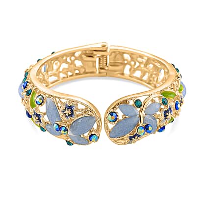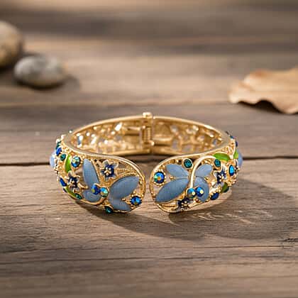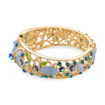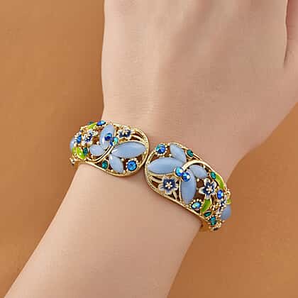 Blue Magic Color Crystal & Blue Color Resin Cuff Bangle (Size - 6.75) with Green Enameling