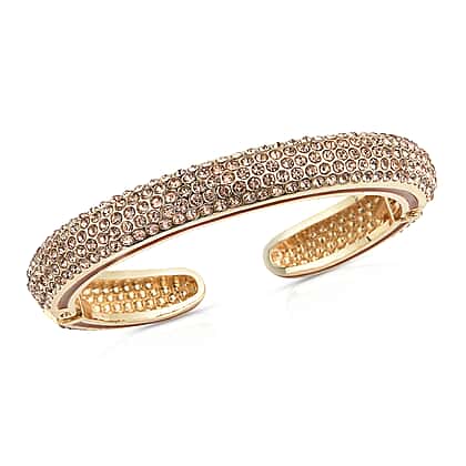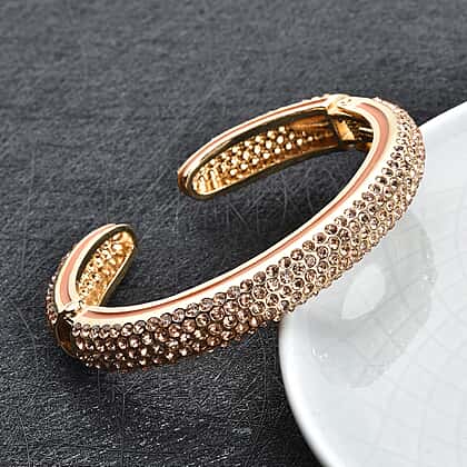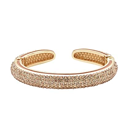 Champagne Austrian Crystal Cuff Bangle (Size 7) Enamelled in Yellow Gold Tone