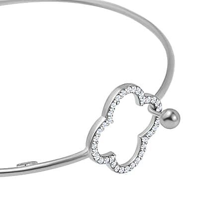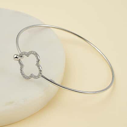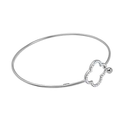 Designer Inspired - Cubic Zirconia Clover Bangle in Platinum Overlay Sterling Silver (Size - 7.5)