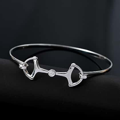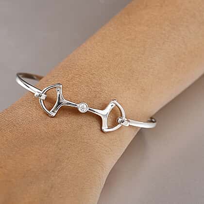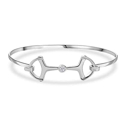 Designer Inspired - Snaffle Bangle (Size 7.5) in Rhodium Overlay Sterling Silver, Silver Wt. 8.25 Gms