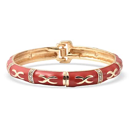 White Austrian Crystal Red Enamelled Bangle Size 7.25 in Yellow Gold Tone