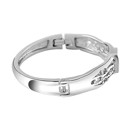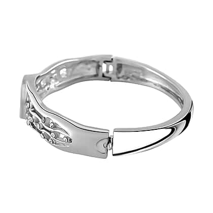 Designer Inspired- Abalone Shell, White Crystal Wave Bangle (Size 7.5) in Silvertone