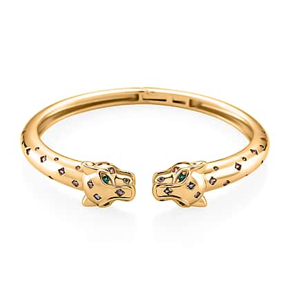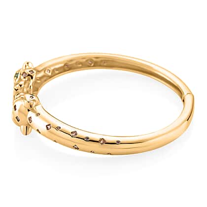 Green Cubic Zirconia, Pink Cubic Zirconia Leopard Openable Bangle (Size 7.5) in Yellow Gold Plated