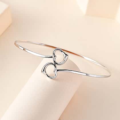 Designer Inspired Close Out Deal - BypassHeart Bangle (Size-7.75) in Platinum Overlay Sterling Silver, Silver Wt 7.00 GM