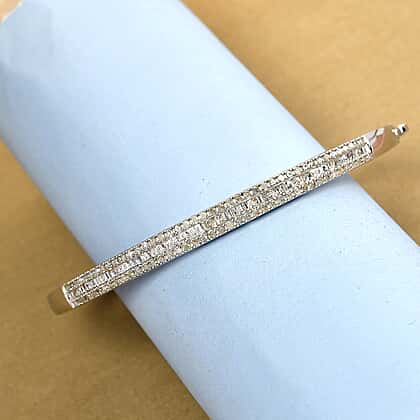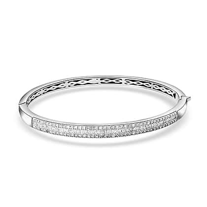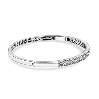 Designer Inspired-Diamond Bangle (Size 7.5) in Platinum Overlay Sterling Silver 1.00 Ct, Silver Wt. 16.06 Gms