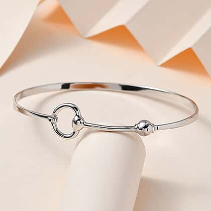 Designer Inspired Rhodium Overlay Sterling Silver Snaffle Bangle (Size - 7.5)