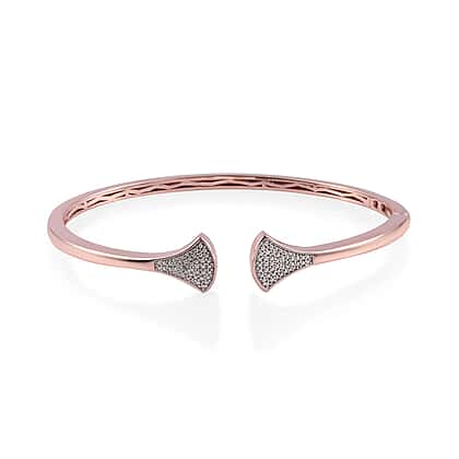Diamond Cuff Bangle (Size 7.5) in 18K Rose Gold Plated