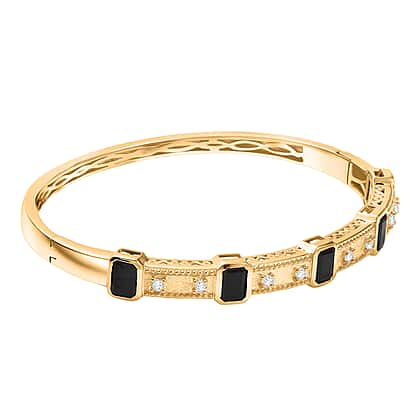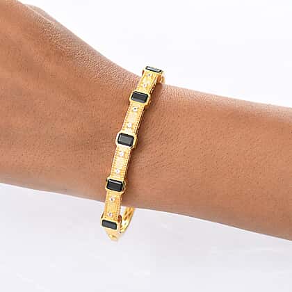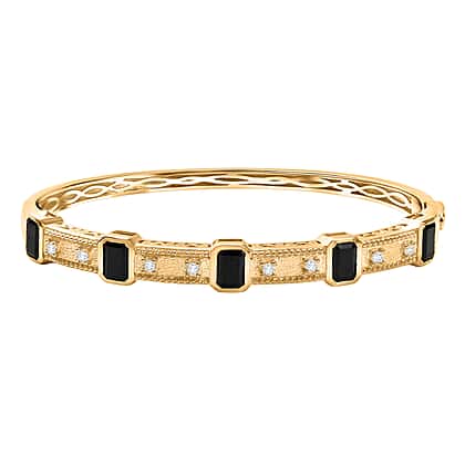 EverTrue Black Spinel & White Zircon Full Bangle (Size 7.5) in Yellow Gold Plated 7.72 Ct.