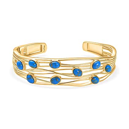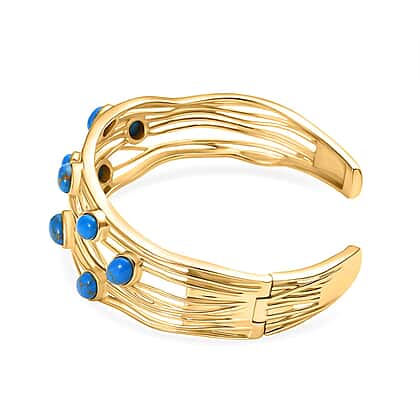 EverTrue Blue Turquoise Cuff Bangle in Yellow Gold Plated 6.20 Ct.