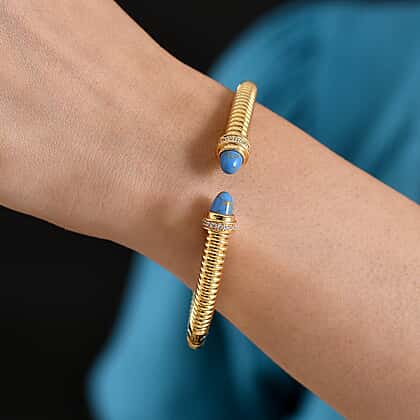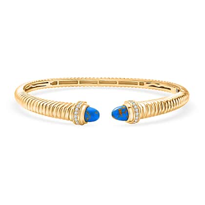 EverTrue Blue Turquoise & White Cubic Zirconia Cuff Bangle (Size-7.5) in Yellow Gold Tone 3.61 Ct.