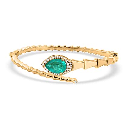 EverTrue Emeraldine Triplet Quartz, White Zircon Full Bangle Pure Yellow Brass 6.819 Ct.