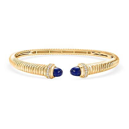 EverTrue Lapis Lazuli & White Cubic Zirconia Cuff Bangle (Size -7.5) in Yellow Gold Tone 3.92 Ct.
