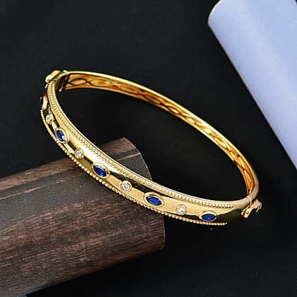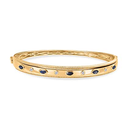 EverTrue Masoala Blue Sapphire & White Zircon Full Bangle (Size -7.5) in Yellow Gold Tone 1.28 Ct.