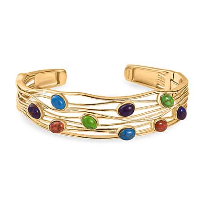 EverTrue Purple Turquoise & Multi Gemstones Cuff Bangle (Size - 7.5) in Yellow Gold Plated 5.79 Ct.