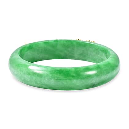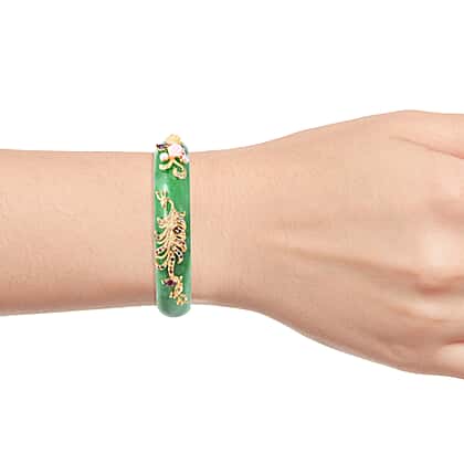 292.84 Ct Green Jade and Multi Gemstone Peacock and Floral Bangle 5.04 Grams 7.25 Inch