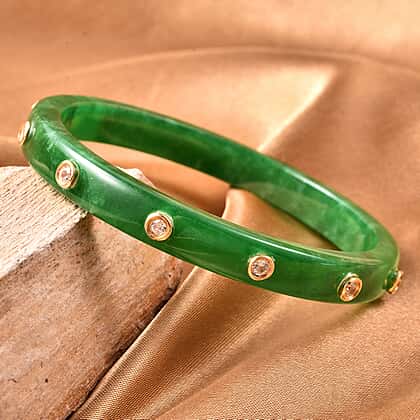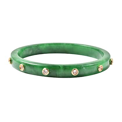 Green Jade and Natural Cambodian Zircon Bangle (Size 7.5) in Sterling Silver 128.00 Ct.