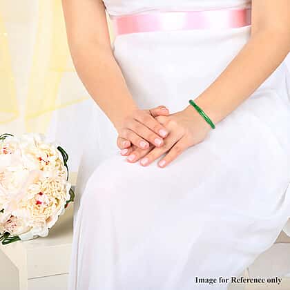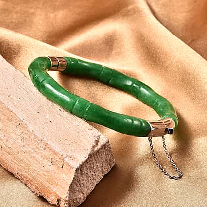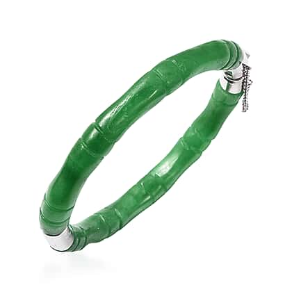 150 Ct. Chinese Green Jade Bamboo Inspired Bangle in Sterling Silver 7.5 Inches