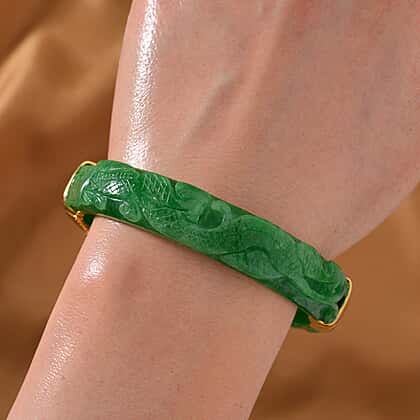 Hand Carved Green Jade Dragon Bangle in 18k Yellow Gold Vermeil Sterling Silver 270.00 ct