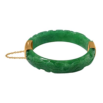 Hand Carved Green Jade Dragon Bangle in 18K Yellow Gold Vermeil Plated Sterling Silver 270 ct.