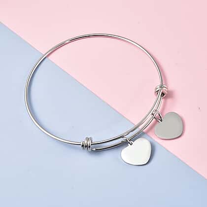 Heart Initial Bangle (Size 8) in Stainless Steel