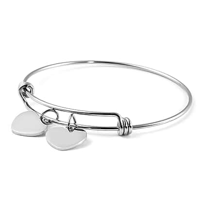 Heart Charm Bangle Size 7.5 in Silver Tone