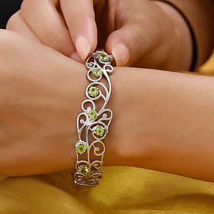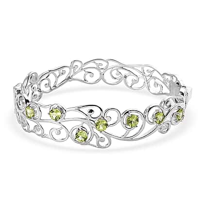 Hebei Peridot Vine Design Bangle (Size 7.5) in Silver Tone 3.59 Ct.