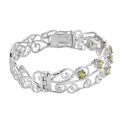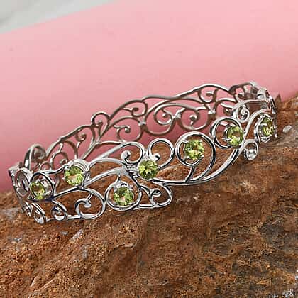 3 Ct. Peridot Scrollwork Bangle in Silver Tone