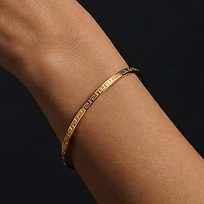 JCK Vegas brings you this epitome of luxury in 9K Yellow Gold, a sleek designer bangle that will make heads turn wherever you go. The bangle fashioned from premium yellow gold has inscriptions resembling Greek Key throughout its length. The look and feel of the bangle is exquisite and its lightweight structure is robust.