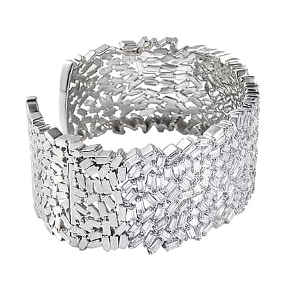 Limited Edition Designer Inspired - Moissanite Cuff Size (7.5) in Platinum Overlay Sterling Silver 22.82 Ct, Silver Wt. 56.19 Gms