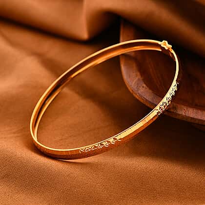 Add a touch of timeless elegance to your jewellery collection with this stunning diamond-cut bangle. Featuring a beautiful diamond-cut design on the surface, this bangle shimmers with every movement, making it a perfect accessory for any occasion. The polished and smooth surface ensures a comfortable fit, while the durable latch mechanism provides secure daily wear. Crafted from high-quality 22K yellow gold, this bangle combines classic design with modern appeal, making it an ideal piece for everyday wear and special occasions.