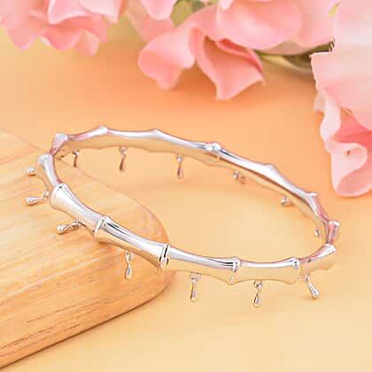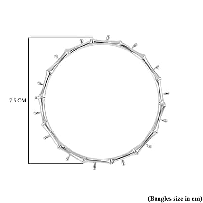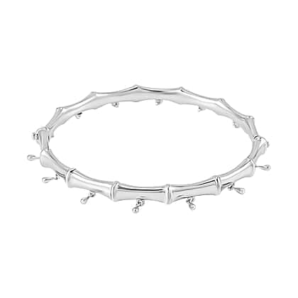 Lucy Q Bamboo Collection - Rhodium Overlay Sterling Silver Bangle (Size 7.5), Silver Wt. 28 Gms