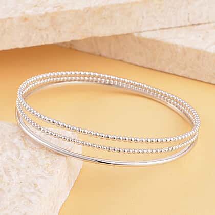 Lucy Q Bubble Drip Collection - Rhodium Overlay Sterling Silver Bangle (Size 7.5), Silver wt. 17.50 Gms.