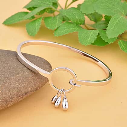 Lucy Q Drip Collection - Rhodium Overlay Sterling Silver Bangle (Size 7.5), Silver Wt. 22 Gms
