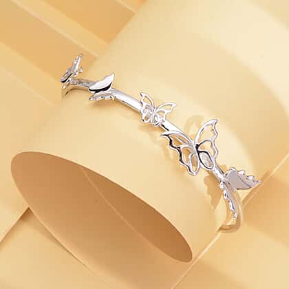 Lucy Q - Rhodium Overlay Sterling Silver Butterfly Cuff Bangle (Size 7), Silver Wt. 12.49 Gms