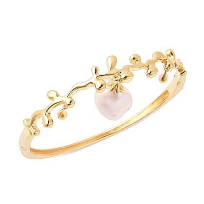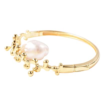 LucyQ Baroque Freshwater White Pearl Splash Drip Design Bangle in Yellow Gold Plated Sterling Silver 7.5 Inch