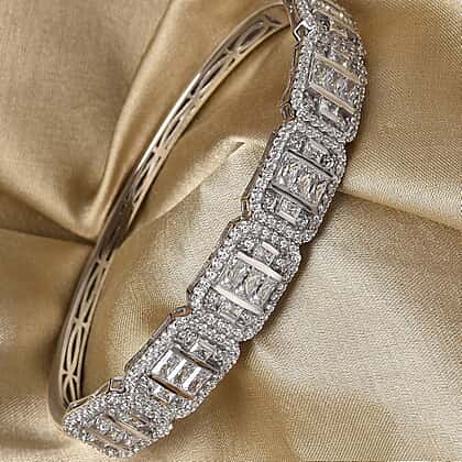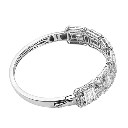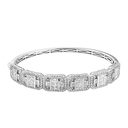 Lustro Stella Finest CZ Bangle in Platinum Plated Sterling Silver Size 7.5