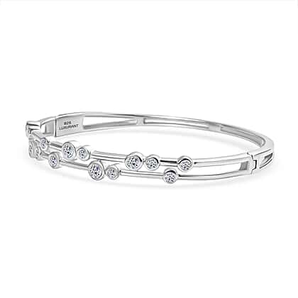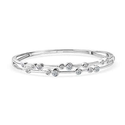 Luxuriant Lab Grown Diamond (SI-GH) BUBBLE Bangle (Size 7.5) in Rhodium Overlay Sterling Silver 1.75 Ct