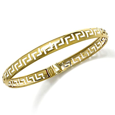 Maestro Collection - 9K Yellow Gold Greek Key Design Bangle (Size 7.5) With Clasp Lock 3.50 gram