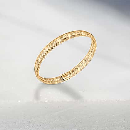 Italian Made 9K Yellow Gold Mesh Stretchable Bangle Size 7 Inch