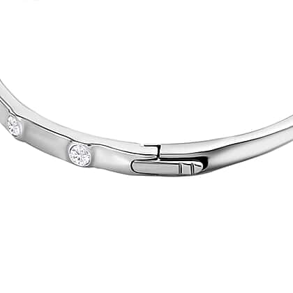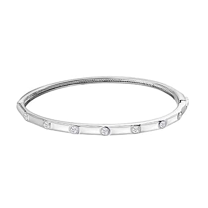 Moissanite Bangle (Size 7) in Platinum Overlay Sterling Silver, Silver Wt. 10.70 Gms