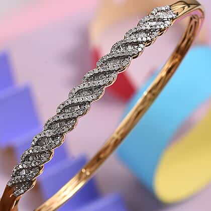 1 Carat Diamond Bangle in Gold Plated Sterling Silver Size 7.5 Inch
