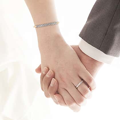 - Alternating waves of tapered and round diamonds created by 203 diamonds