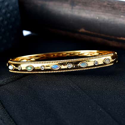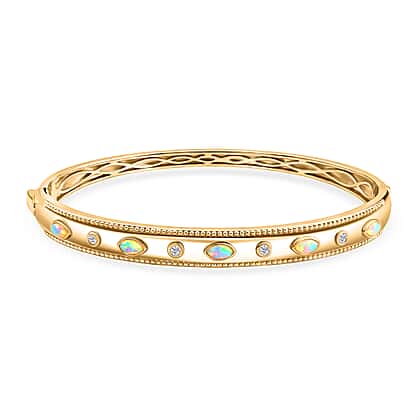 ONE TIME DEAL - EverTrue Natural Ethiopian Opal & Natural White Zircon Bangle (Size - 7.5)