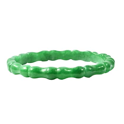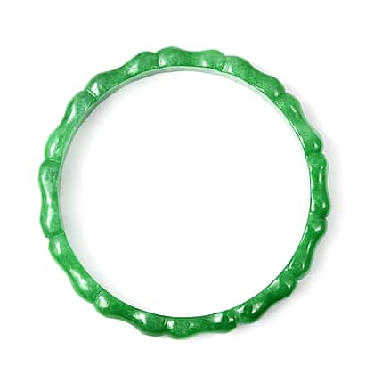One Time Deal-Carved Green Jade Bamboo Bangle (Size 7.75) 109.00 Ct.