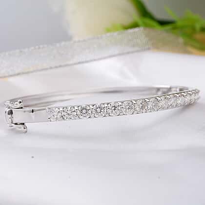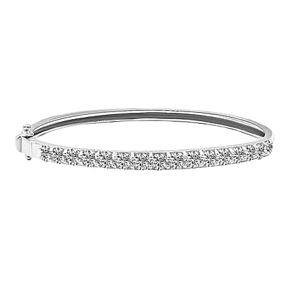 Personalised Engravable Moissanite Half Eternity Bangle Size 7.5 in Rhodium Plated Sterling Silver 4.00 Ct.