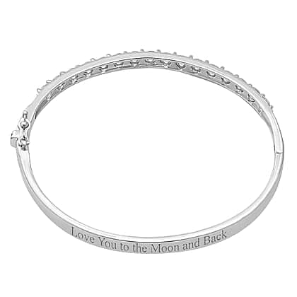 Personalised Engravable Moissanite Half Eternity Bangle Bracelet Size 7.5 in Rhodium Plated Sterling Silver 4.00 Ct.
